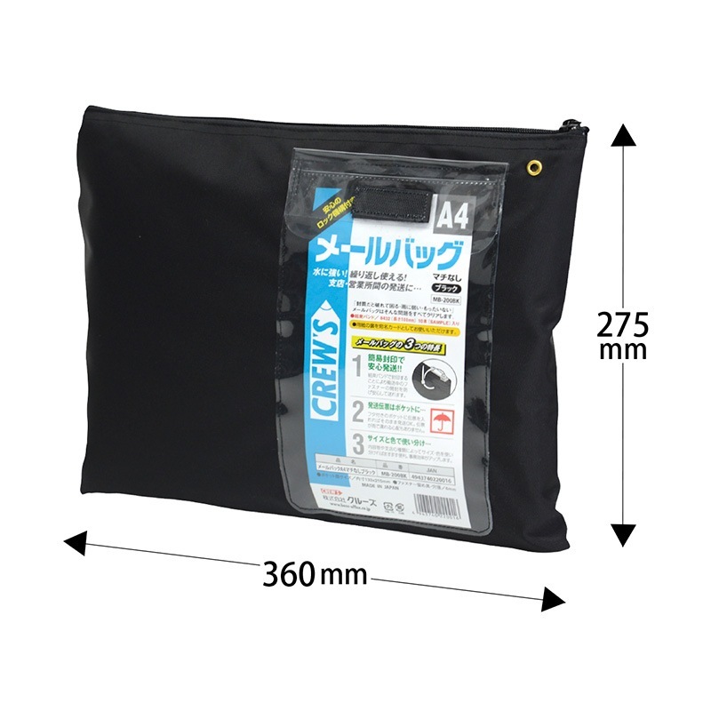 繰り返し使えるメールバッグです。日本製のため、生地が丈夫で縫製も丁寧です。豊富なバリエーションで、サイズ別・色別で管理することができます。付属品の結束バンドで封印して中身の紛失や盗難が防げます。本体に名入れ、オリジナルサイズの製作も可能です。