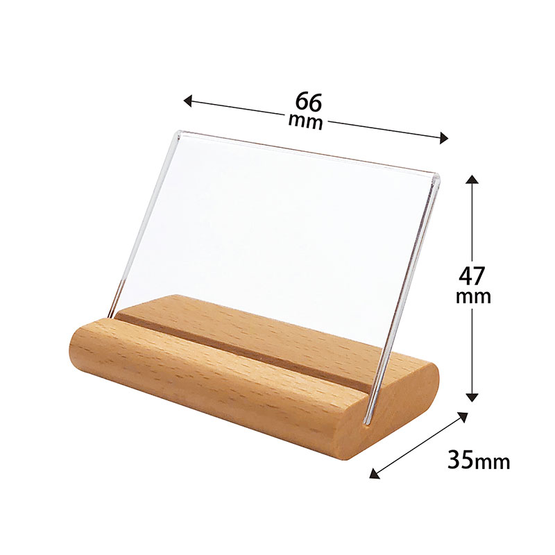 品番:LX-810JAN:4943740790939外寸:W66xD35xH47mm材質:アクリル(1.5mm厚)、木製(欅)製造国:中国適合用紙サイズ:W65xH40mm※商品1個ずつOPP袋で個包装されています