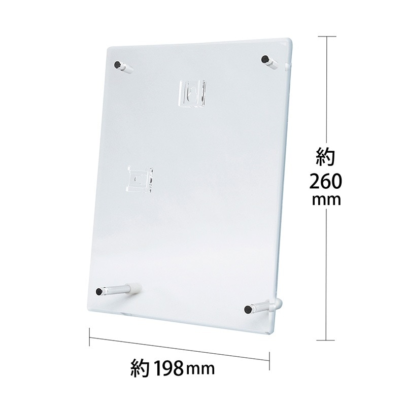 品番:CRK791363JAN:4943740791363外寸:W198xH260mm適合用紙サイズ:A5(W148xH210mm)材質:アクリル(厚み/表4mm・裏2mm)色:クリア製造国:中国付属品:シリコンゴム付きビス(短ビス4本・長ビス2本)、用紙仮留めラベル