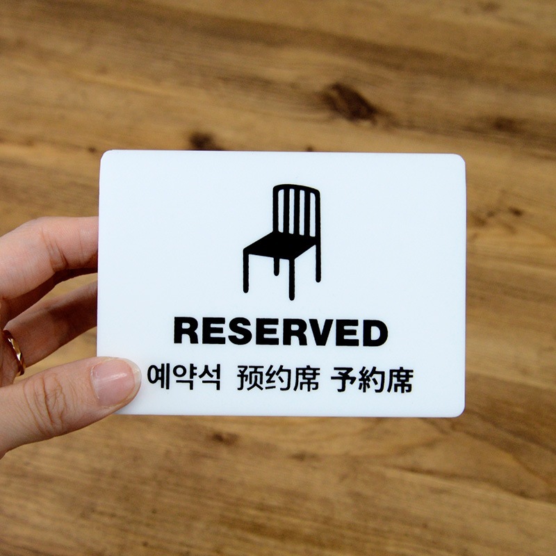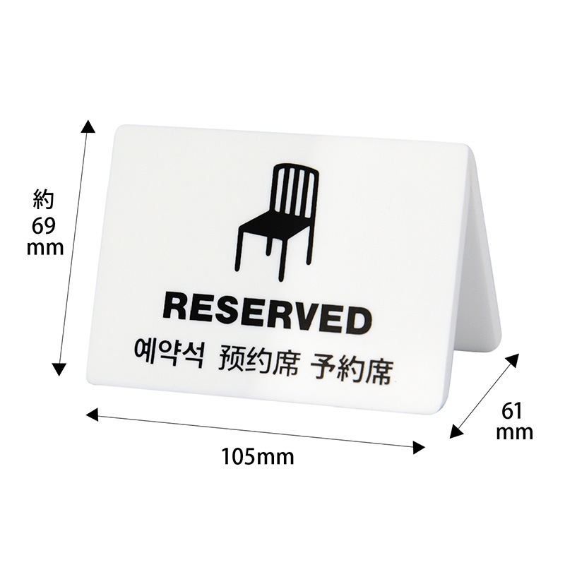 カウンターやテーブルなどにおいて一目でわかるアイテムです。4ヶ国語の表記で海外のお客様が多いお店に最適です。オリジナルのデザイン、サイズを製作することも可能です。