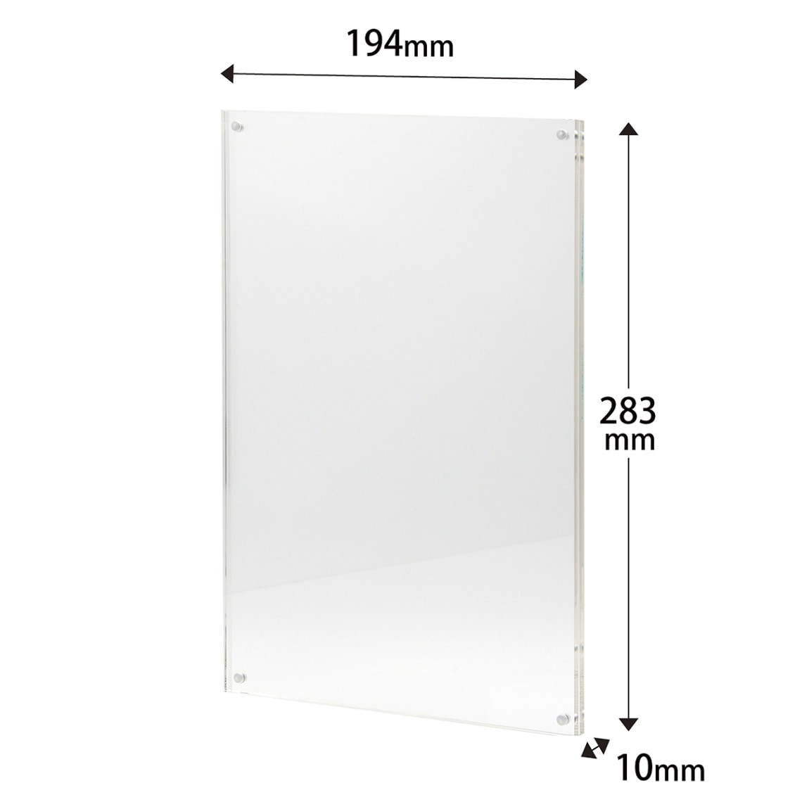 品番:CRJ83005JAN:4943740747285外寸:W194×D10×H283mm適合用紙サイズ:182×257mm材質:アクリル(5mm+5mm厚)色:クリア製造国:中国