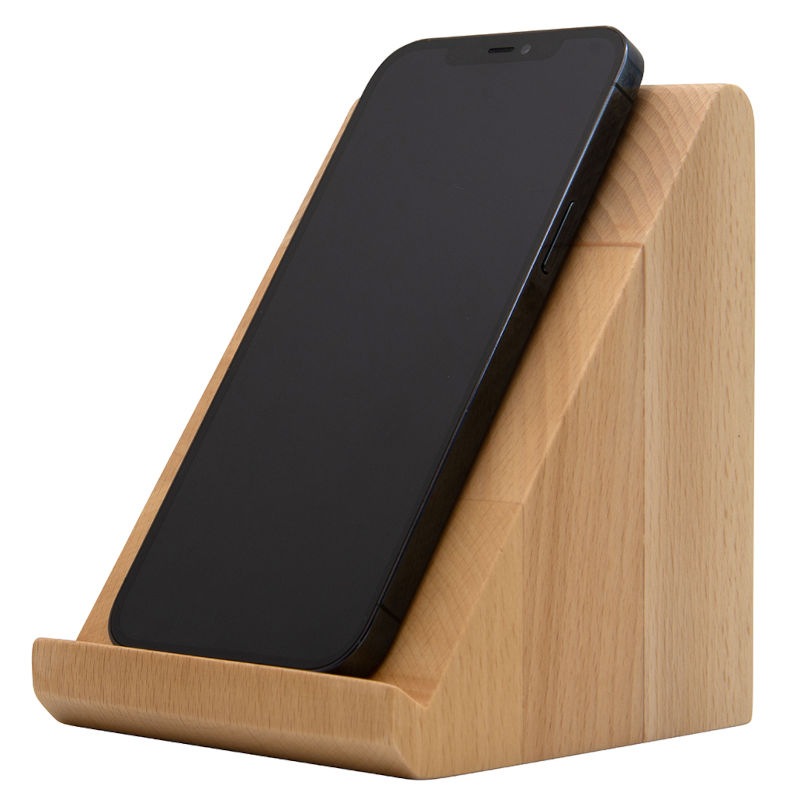 環境に配慮した、プラスチック不使用の木製タブレットスタンドです。木目カラーで、様々な空間に優しく溶け込みます。温かい印象の木目カラーですので、ホテルのフロントやレジ周りでのご使用にも、いかがでしょうか。※こちらの製品は材質の特性上、全く同じ木目の商品はございません。予めご了承ください。