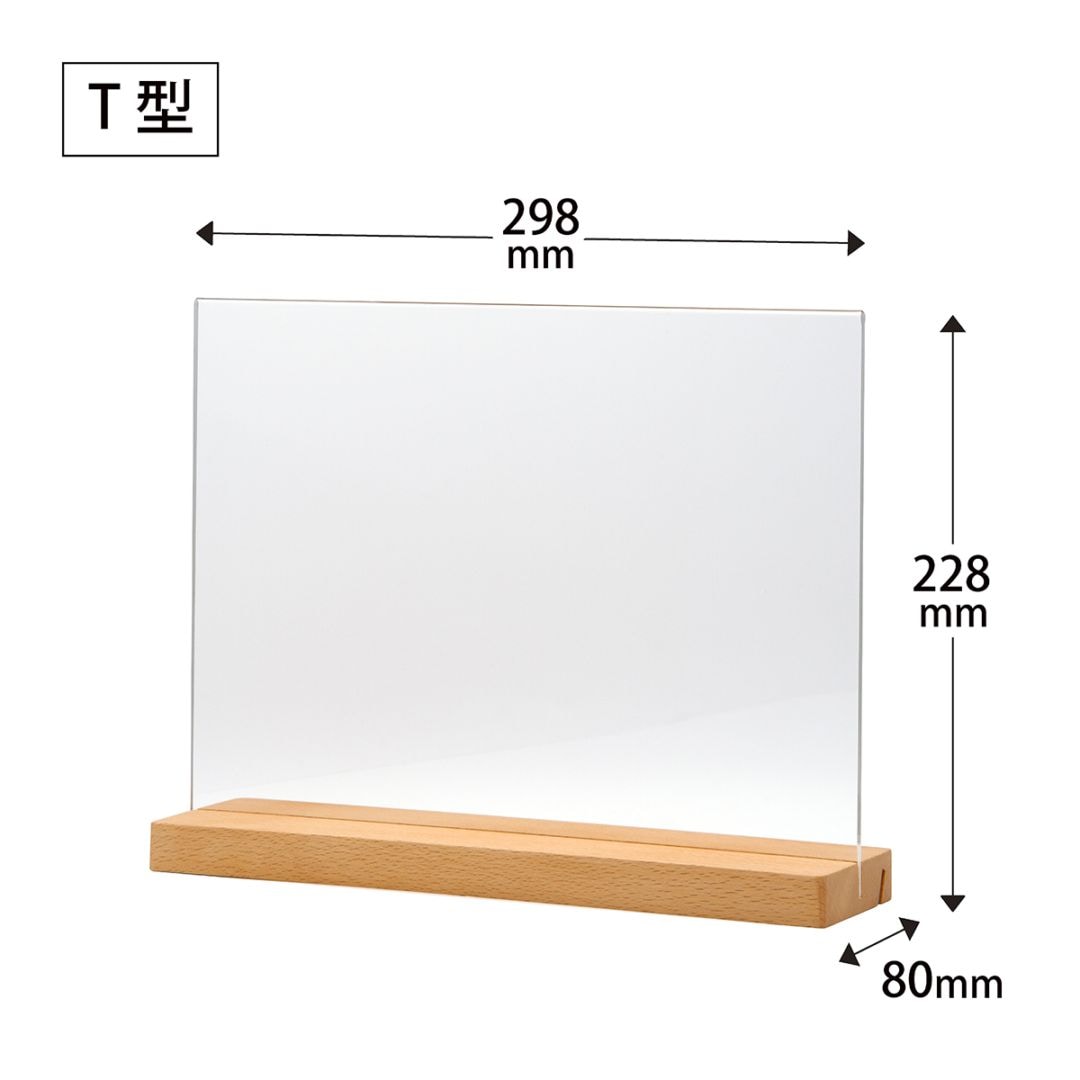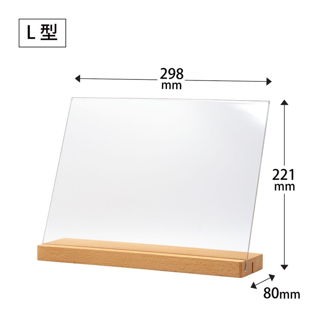 メニューやアピールしたい印刷物などをきれいに見せる木製スタンドのアクリルサインホルダーです。透明度の高いアクリル製で、写真や文字をくっきりキレイに見せることができます。木製の台座はL型・T型の2パターンでご使用いただけます。オリジナルサイズを製作することも可能です。